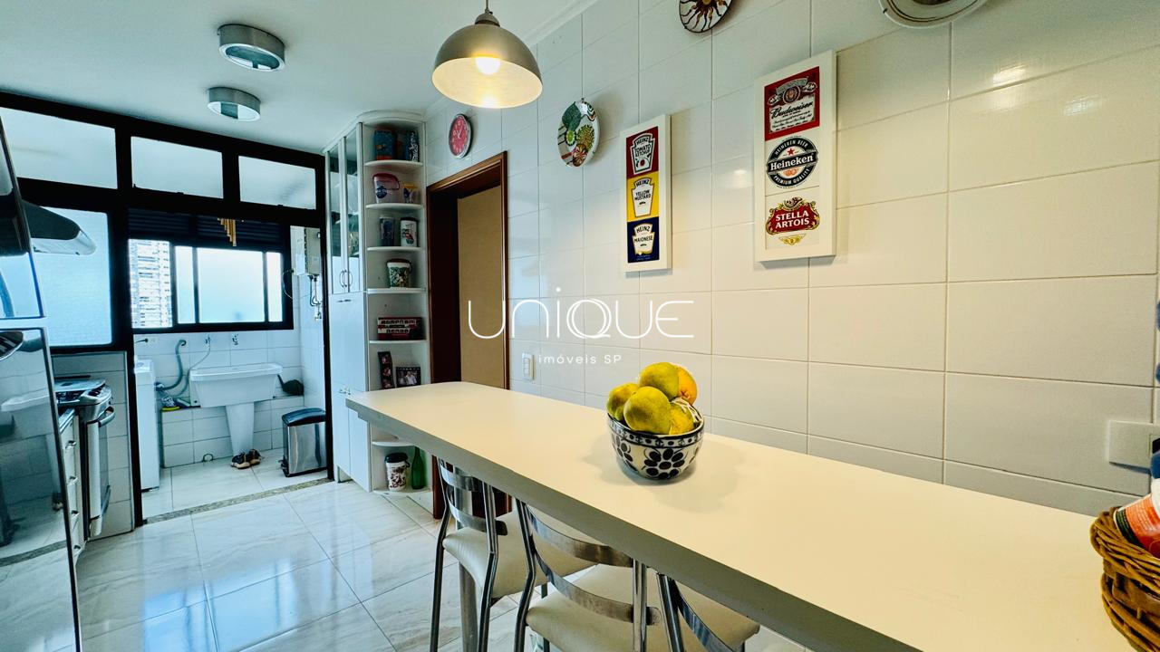 A cozinha está completamente equipada e possui entrada de serviço independente. Área de serviço espaçosa, com despensa e banheiro auxiliar.