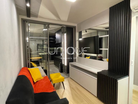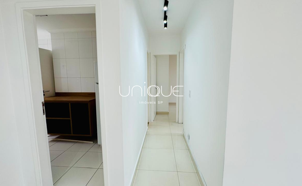 Imóvel de 64m², pronto para morar, com sala para dois ambientes, duas entradas e varanda. Possui 2 quartos, banheiro social e cozinha equipada com armários, geladeira e fogão. Área de serviço com dependência completa (quarto e banheiro). Unidade muito clara, com sol da tarde e 1 vaga de garagem.