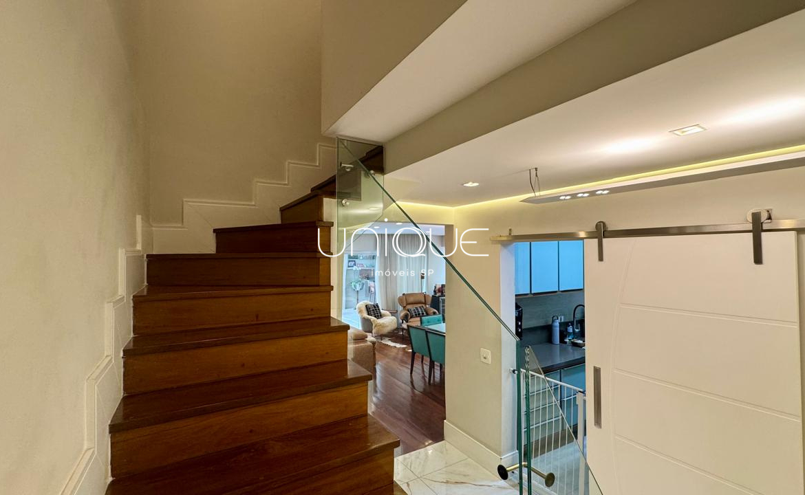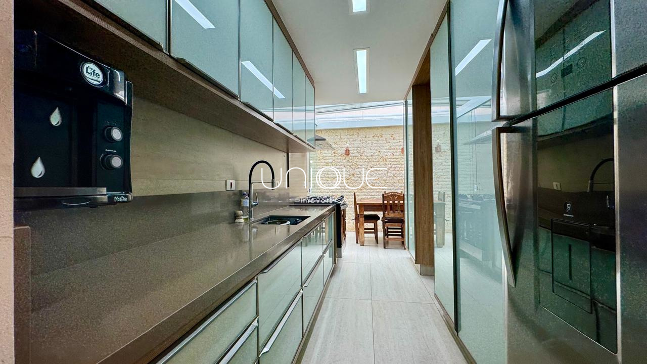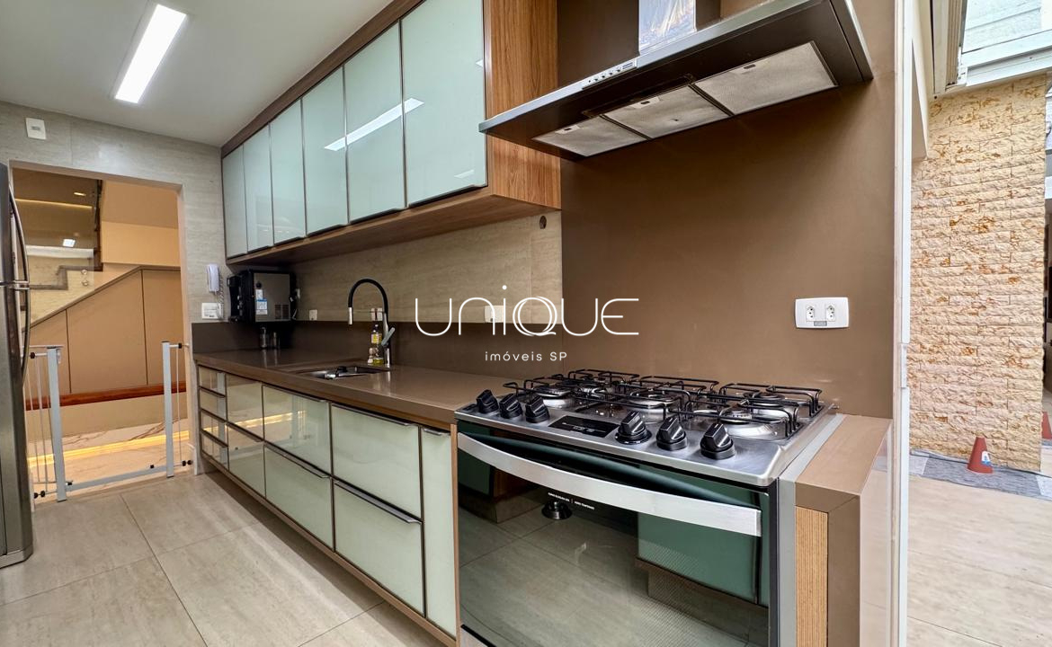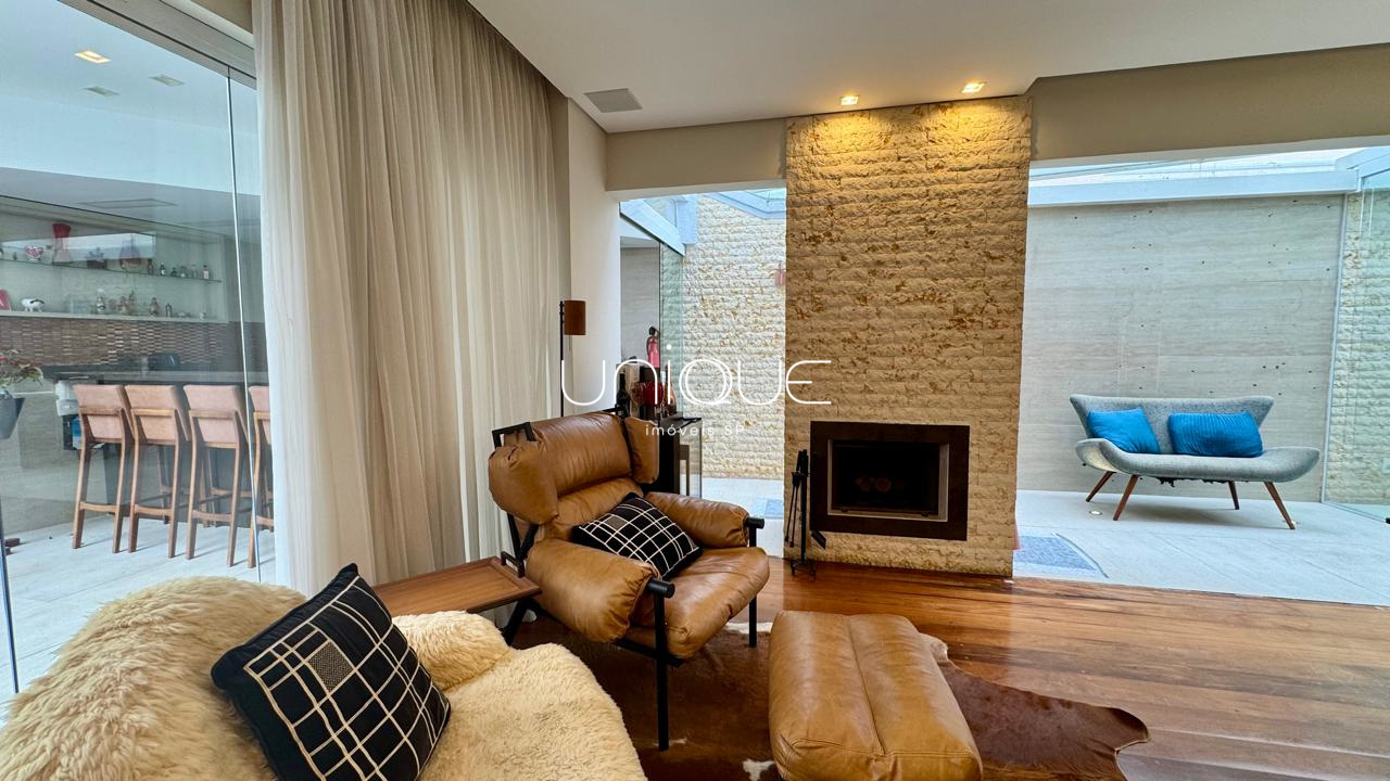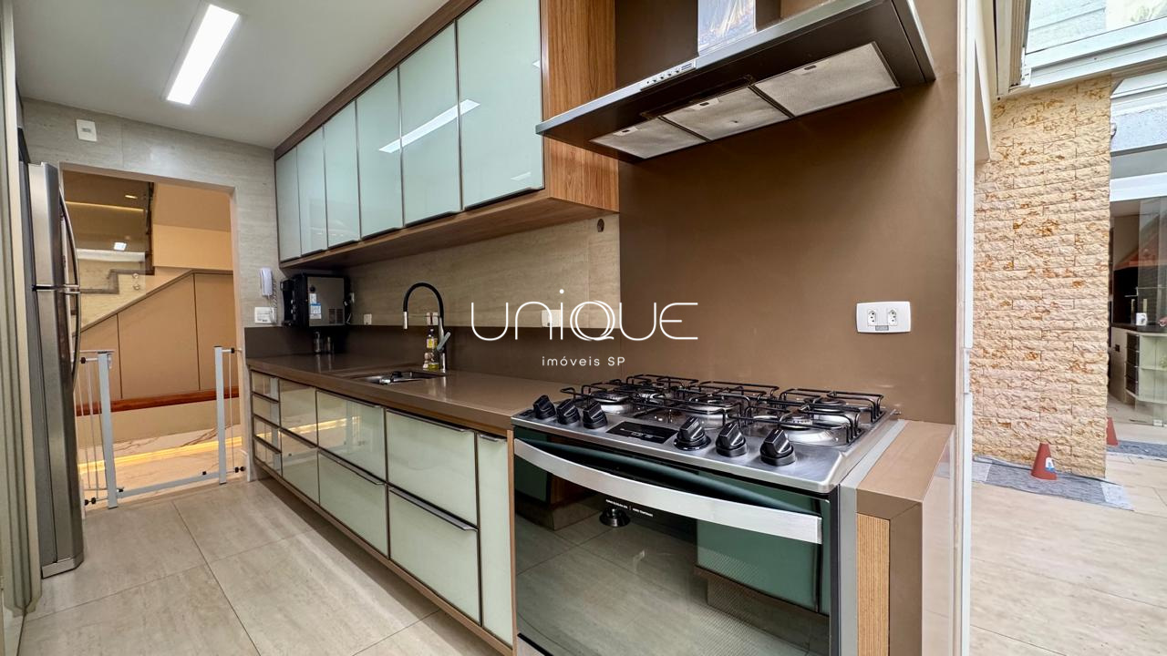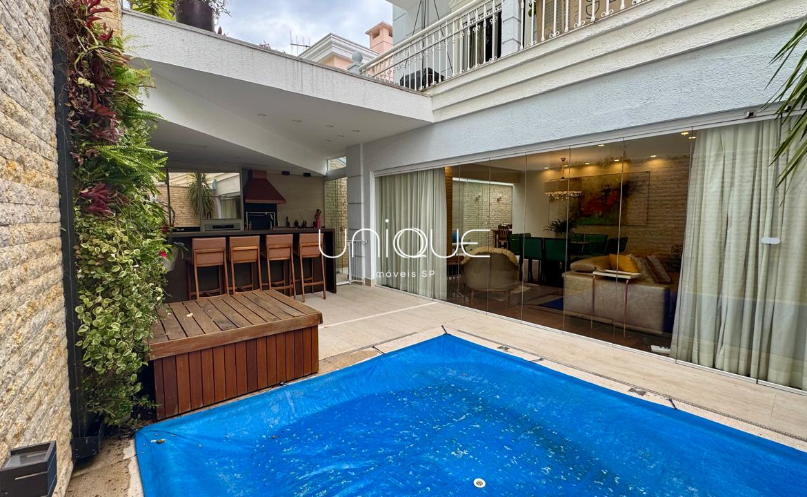 No piso térreo, você encontra uma ampla sala de estar e jantar, climatizada com ar-condicionado e equipada com lareira, perfeita para receber com elegância. Nos fundos, um espaço gourmet com piscina e churrasqueira convida a momentos memoráveis com família e amigos. A cozinha é totalmente equipada e integrada à área de serviço, que inclui dependência completa com quarto e banheiro para funcionários.