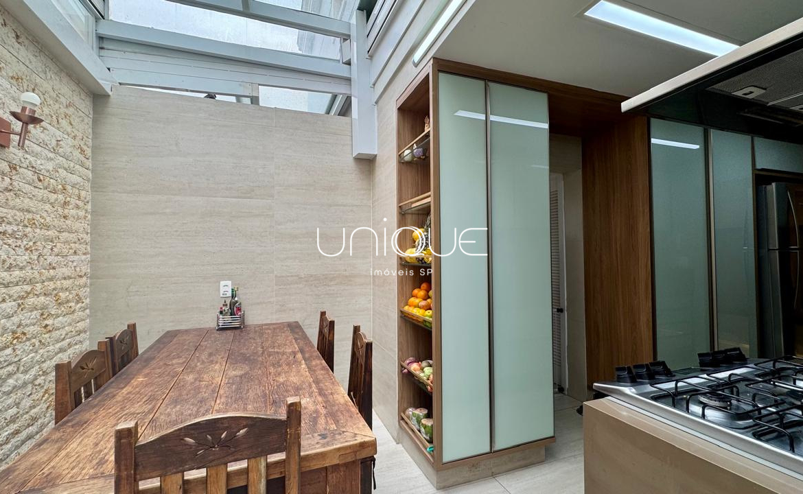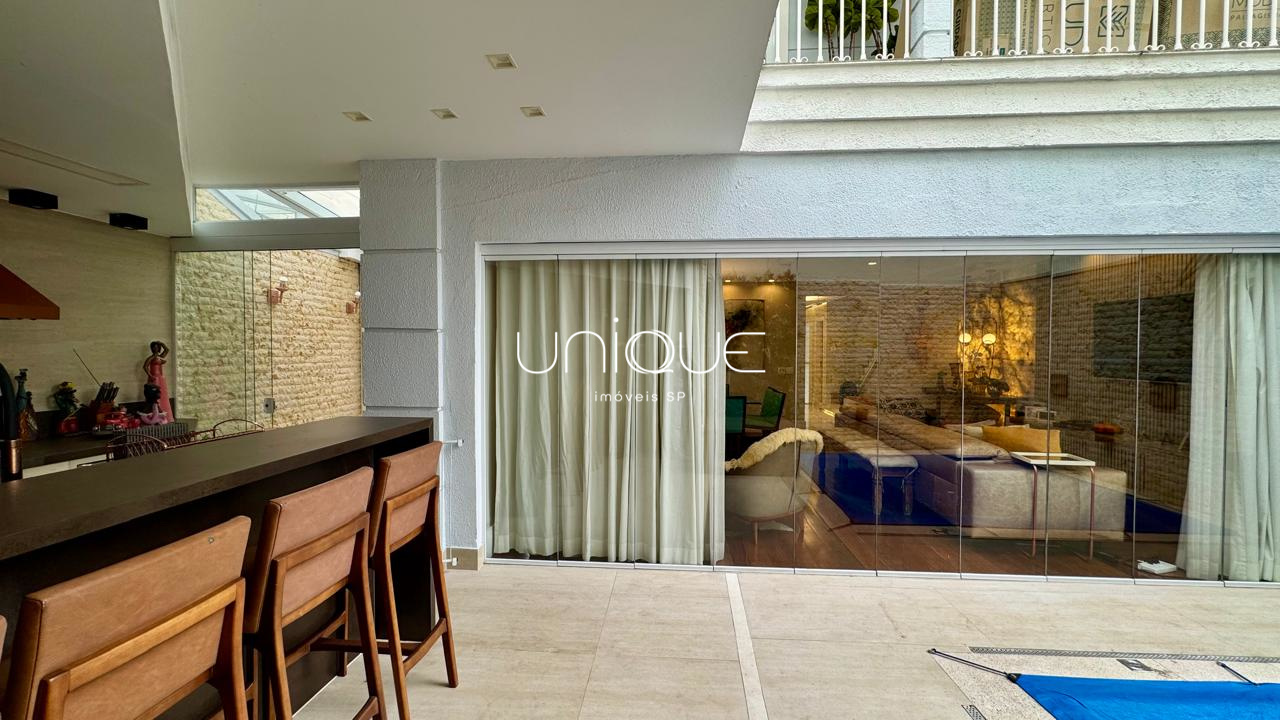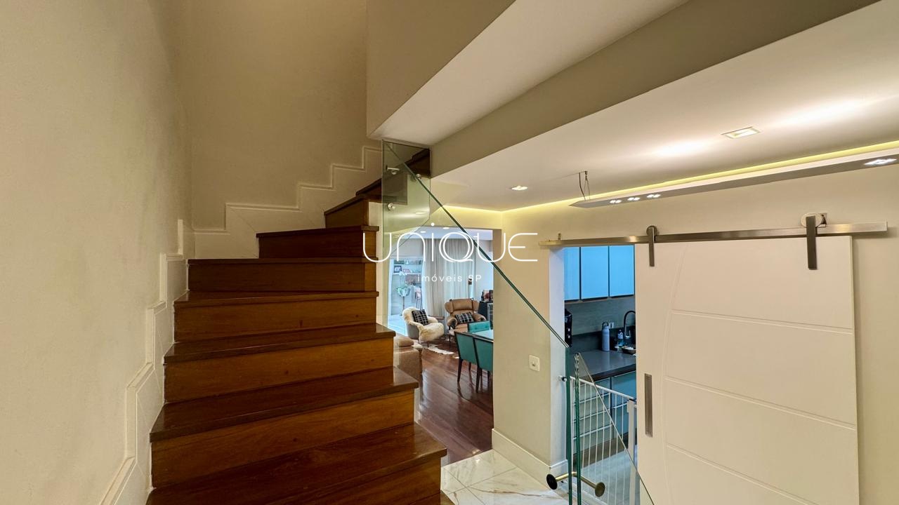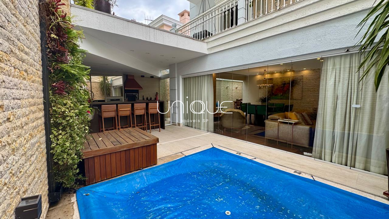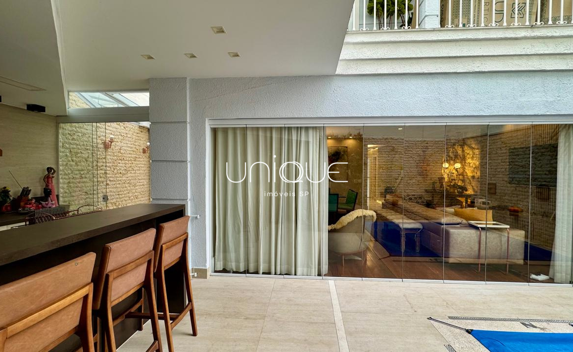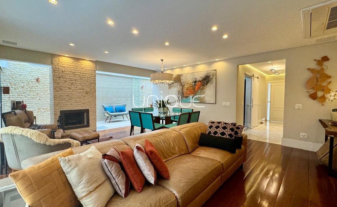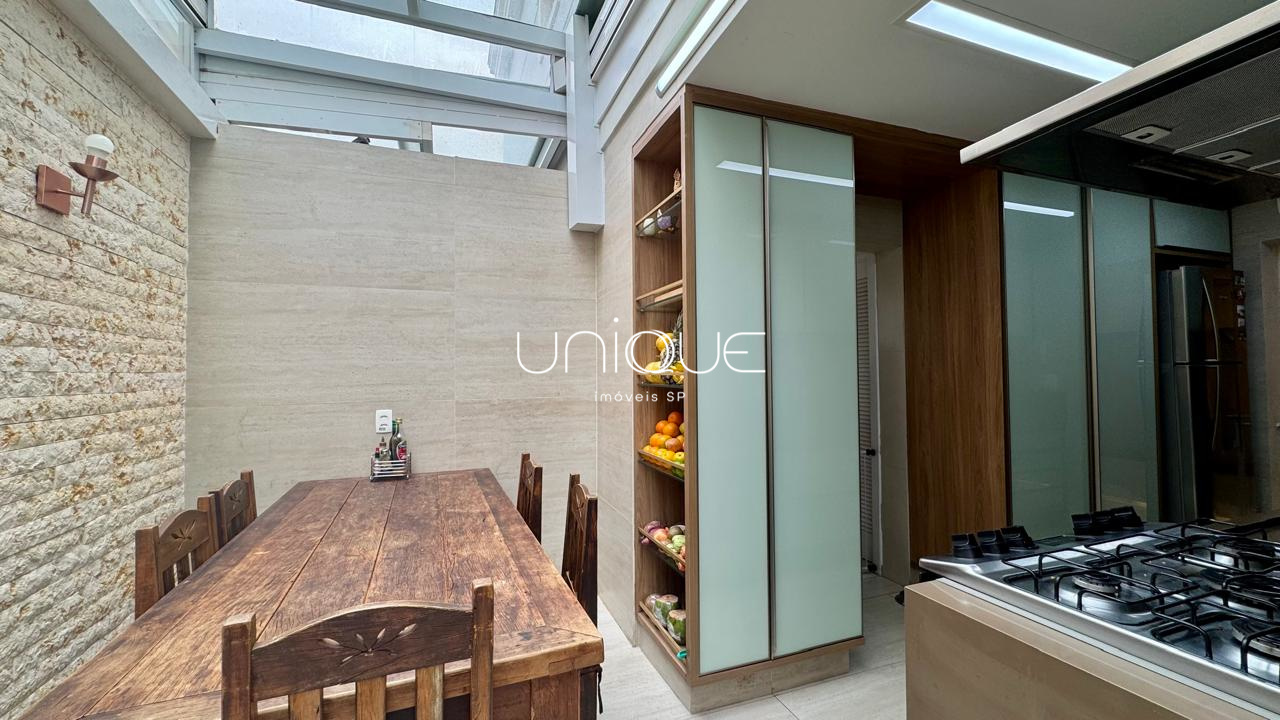 No piso térreo, você encontra uma ampla sala de estar e jantar, climatizada com ar-condicionado e equipada com lareira, perfeita para receber com elegância. Nos fundos, um espaço gourmet com piscina e churrasqueira convida a momentos memoráveis com família e amigos. A cozinha é totalmente equipada e integrada à área de serviço, que inclui dependência completa com quarto e banheiro para funcionários.