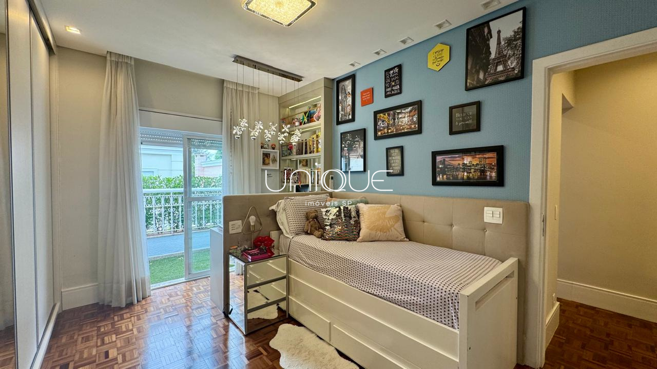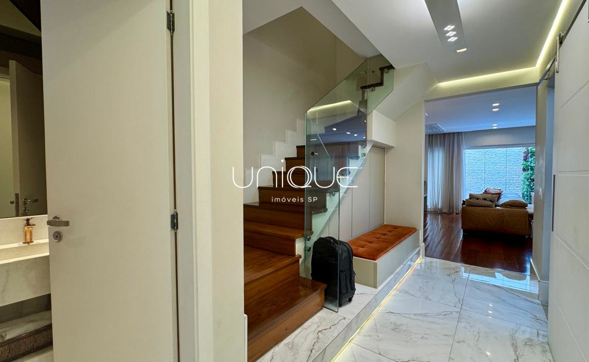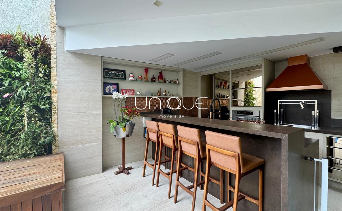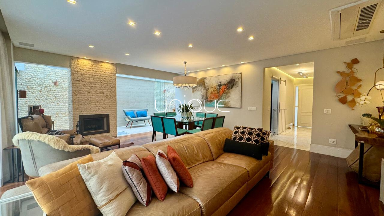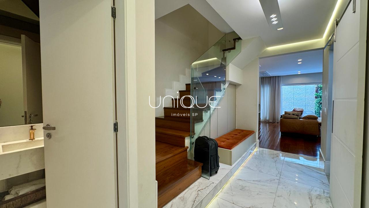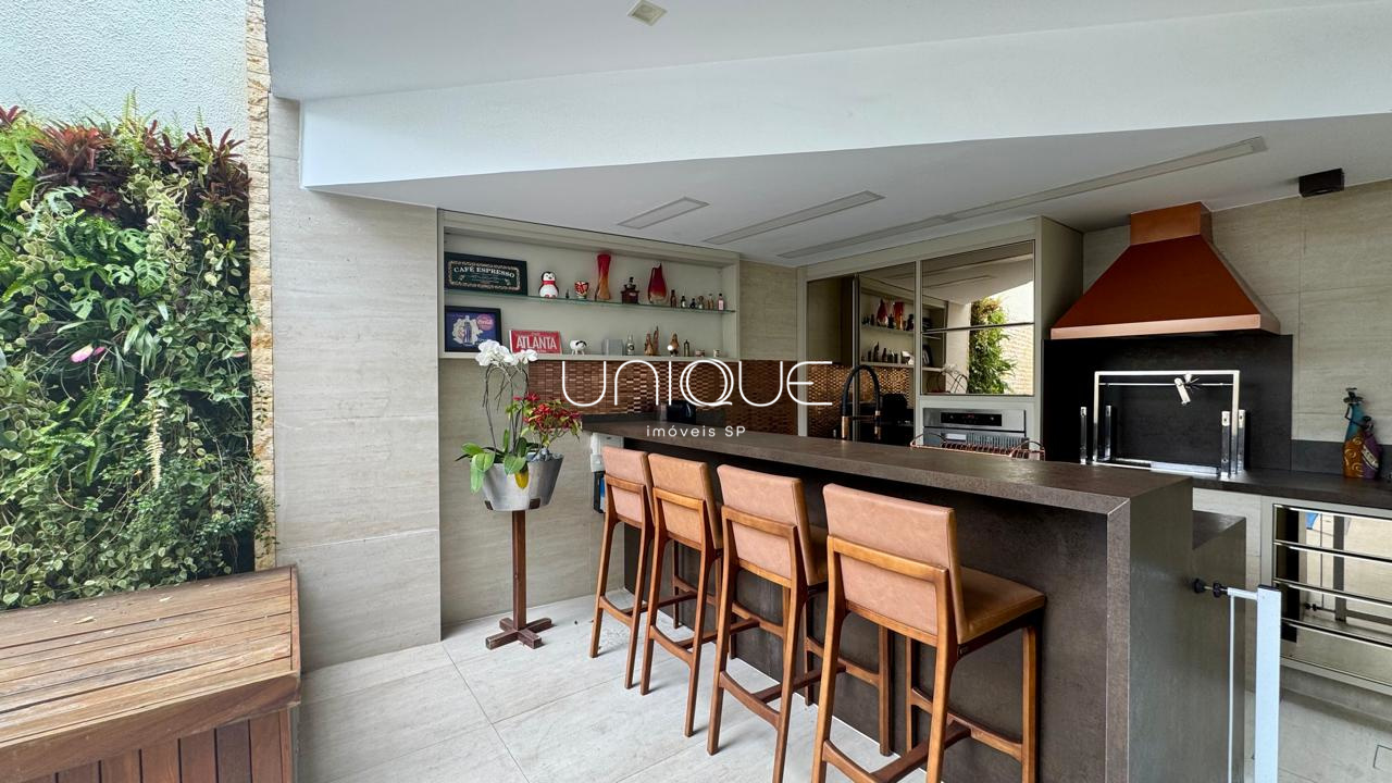 No piso térreo, você encontra uma ampla sala de estar e jantar, climatizada com ar-condicionado e equipada com lareira, perfeita para receber com elegância. Nos fundos, um espaço gourmet com piscina e churrasqueira convida a momentos memoráveis com família e amigos. A cozinha é totalmente equipada e integrada à área de serviço, que inclui dependência completa com quarto e banheiro para funcionários.