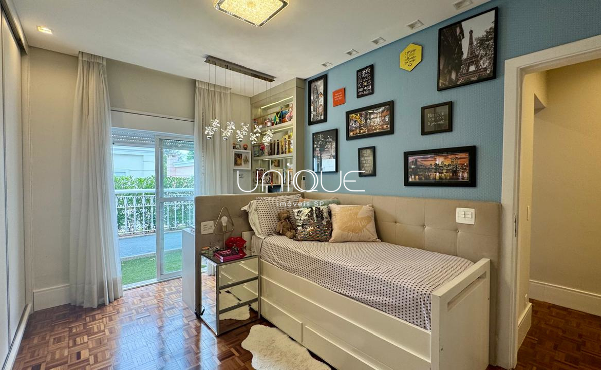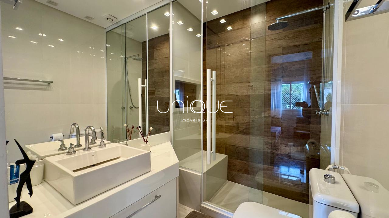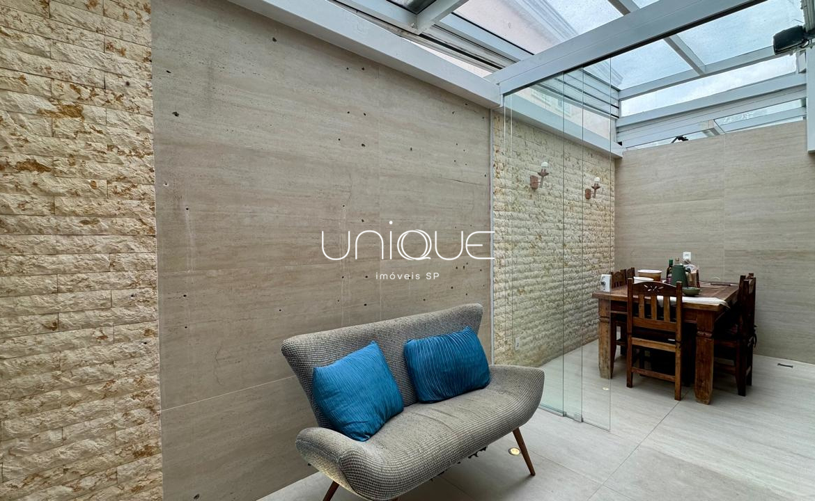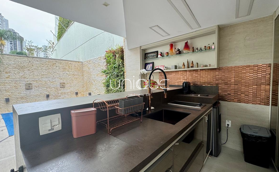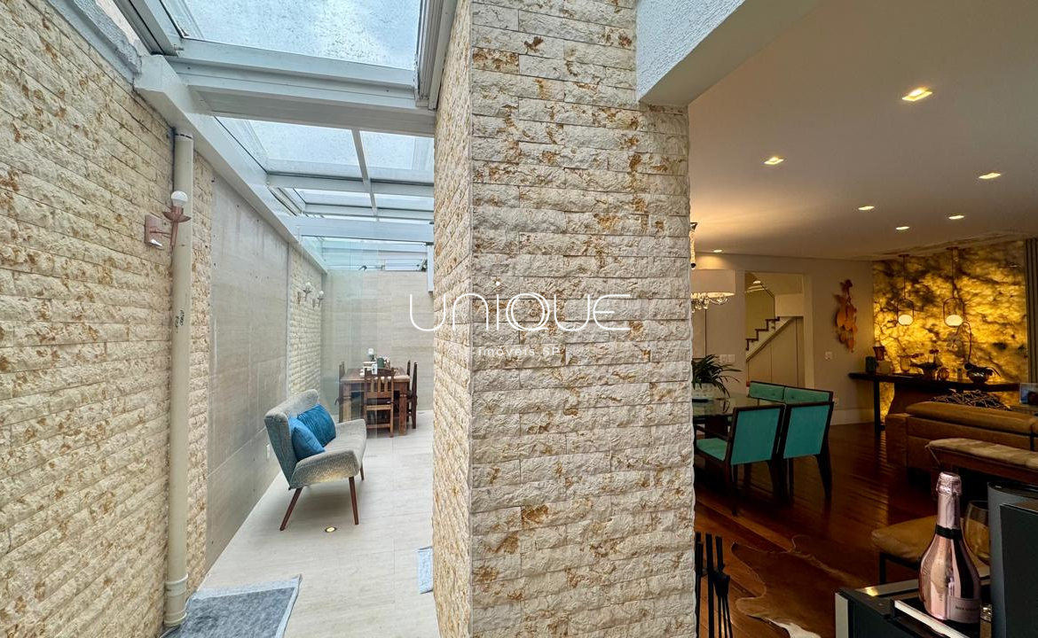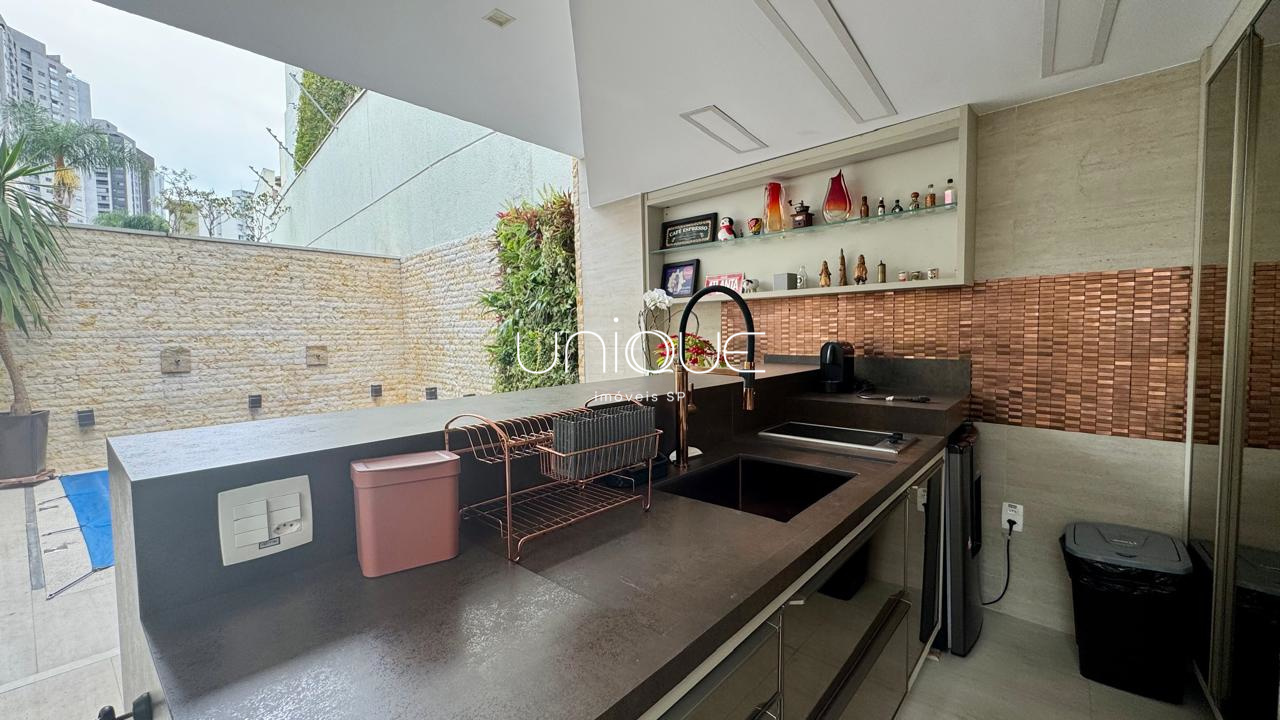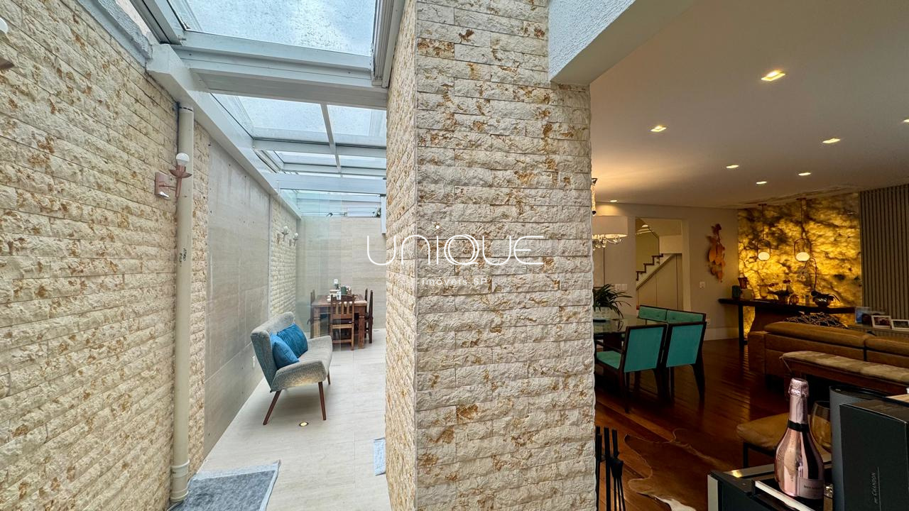 No piso térreo, você encontra uma ampla sala de estar e jantar, climatizada com ar-condicionado e equipada com lareira, perfeita para receber com elegância. Nos fundos, um espaço gourmet com piscina e churrasqueira convida a momentos memoráveis com família e amigos. A cozinha é totalmente equipada e integrada à área de serviço, que inclui dependência completa com quarto e banheiro para funcionários.