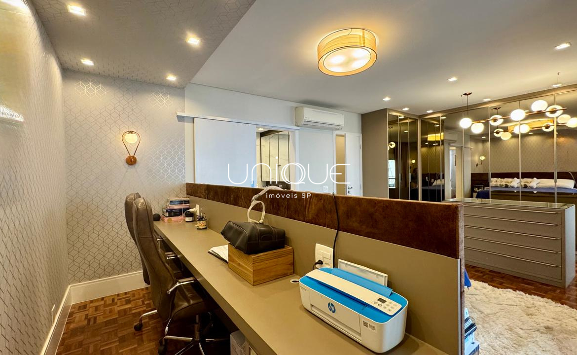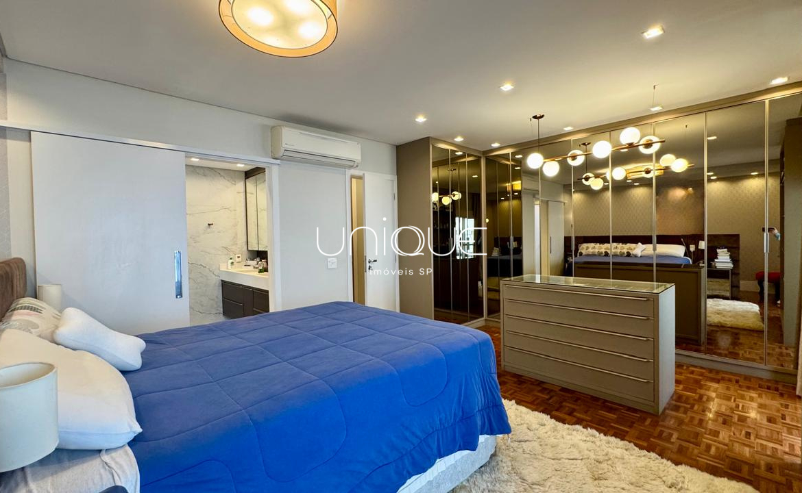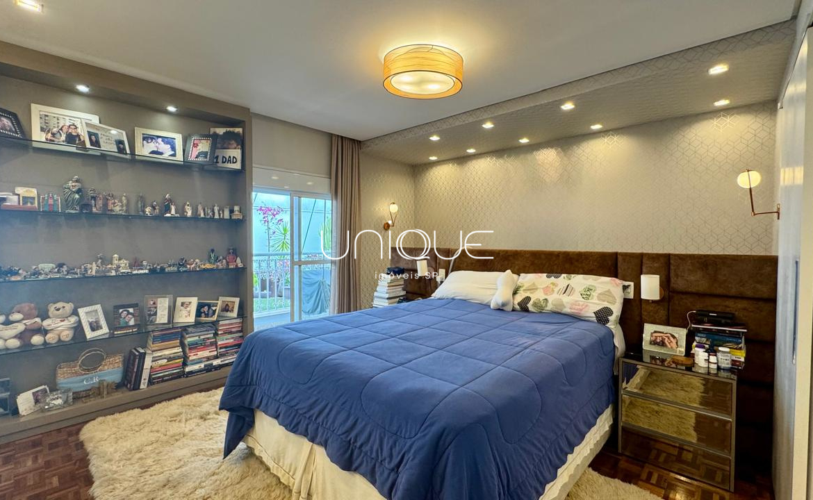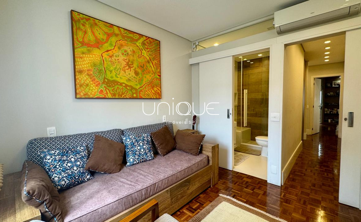 A área íntima conta com 3 suítes espaçosas, todas com armários embutidos de excelente qualidade, oferecendo conforto e praticidade.