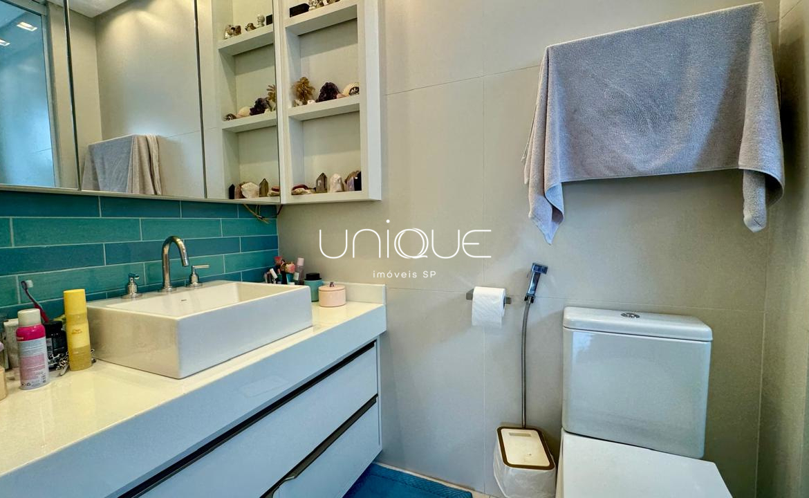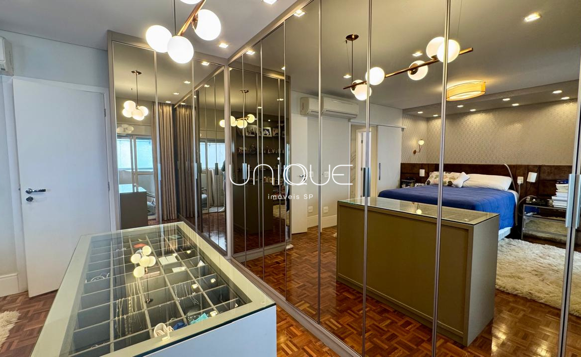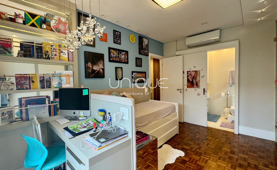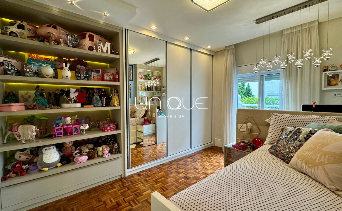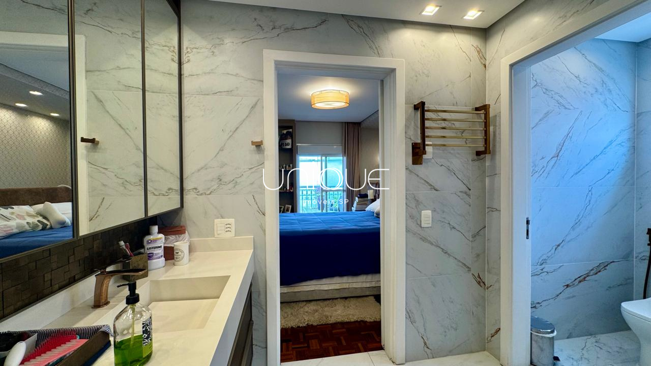 A área íntima conta com 3 suítes espaçosas, todas com armários embutidos de excelente qualidade, oferecendo conforto e praticidade.